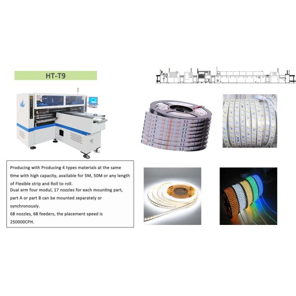 T9 is the professional high speed placement machine, apply to 5M/10M/25M/50M/100M/200M any length roll to roll Led strip light